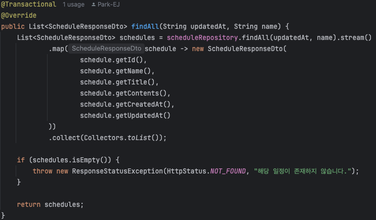 ① List<ScheduleResponseDto> schedules 변수로 변환
