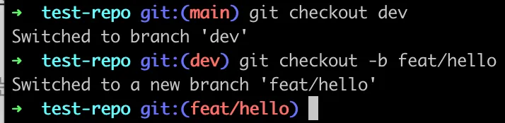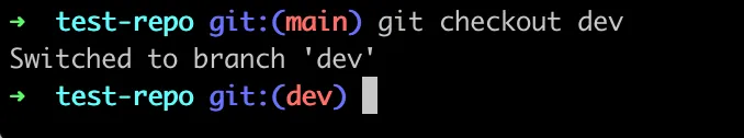 - main에서 dev 브랜치로 checkout(브랜치 이동)