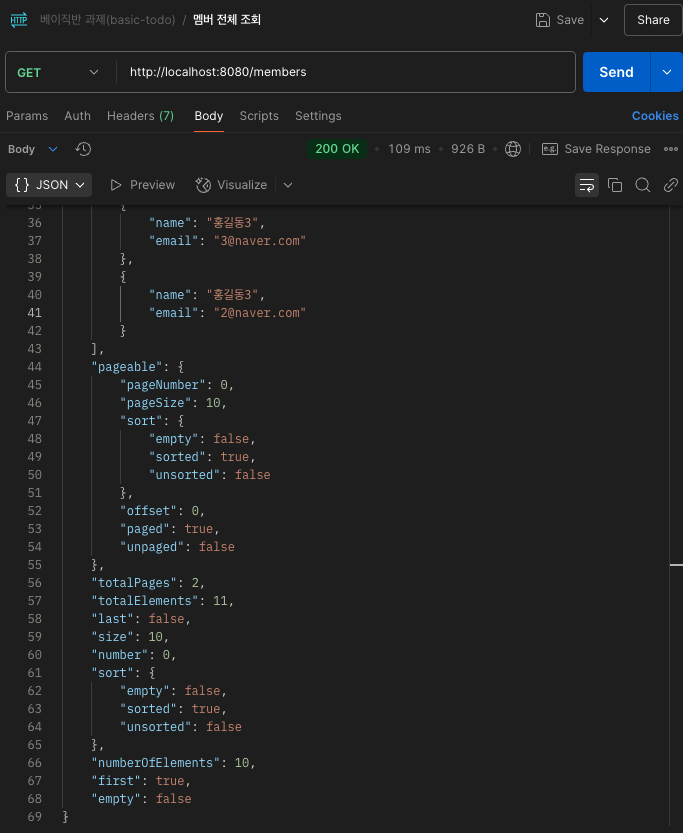 1. Pageable 설정 전(기본 멤버 전체 조회)