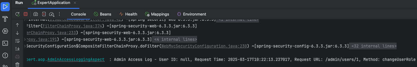 1. 개요: 플러스 심화 주차 과제를 진행하며, 겪은 이슈에 대한 정리 및 회고 2. 트러블 슈팅: AOP User ID null● 배경AdminAccessLoggingAspect - logBeforeChangeUserRole 메서드 실행 시 로그에 User ID : null 발생 ● 원인Spring Security 설정 후 HttpServletRequest에서 getAttribute("userId")로 정보를 가져오지 못함 ● 해결방안 1SecurityContextHolder를 활용하여 userId를 로그에 반환하도록 수정한다.AdminAccessLoggingAspect에서 HttpServletRequest request.getAttribute("userId")를 사용하여 userId를 가져오고 있지만..